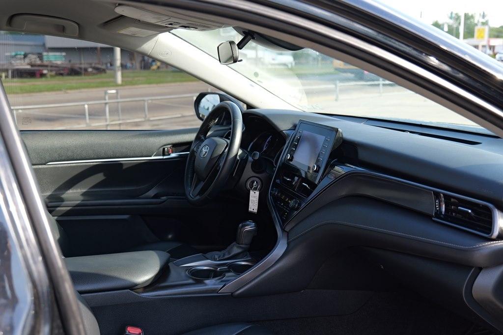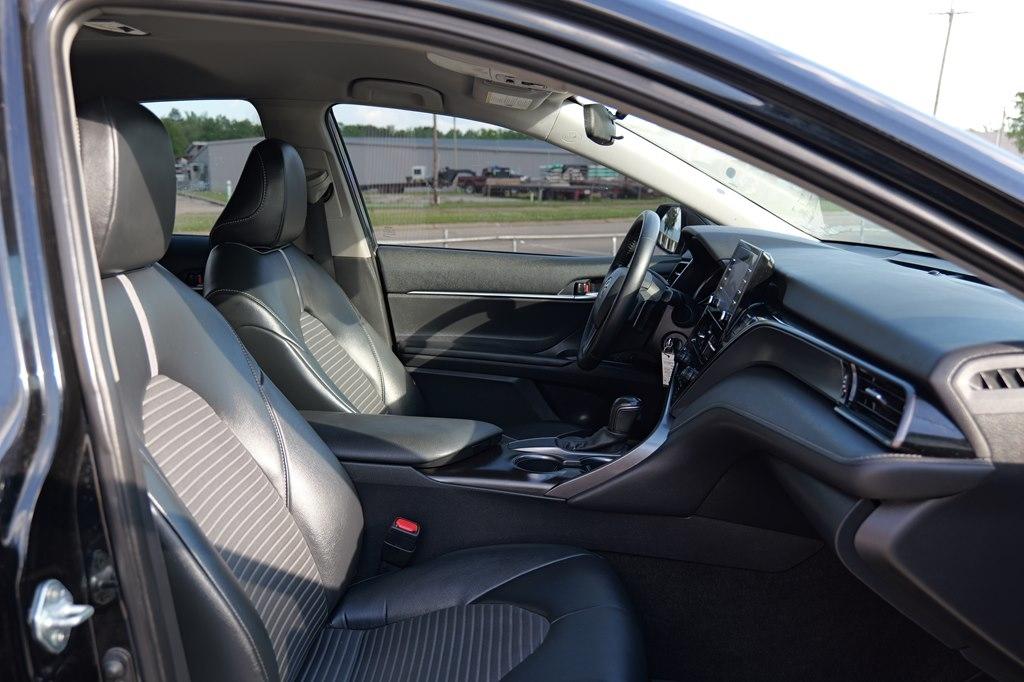 Step into the sleek and sophisticated world of this 2021 Toyota Camry in classic black. This sedan is more than just a car; it's a statement piece on wheels. With its smooth lines, bold curves, and undeniable charisma, you'll turn heads wherever you go.